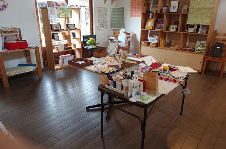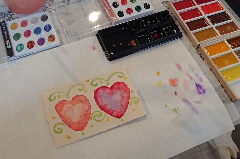 iROiROのお客様でもあるArt galerie Feuilleさんが風びよりのイベントスペースで展示会をなさっています。今日は「❤️の絵を描こう」ワークショップに参加させて頂きました。