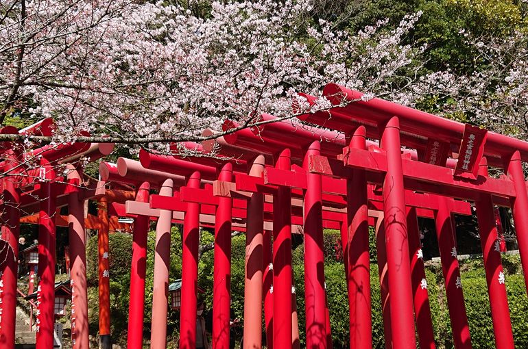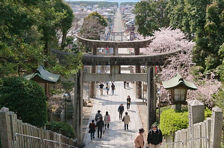 ずっと行きたいと思っていた神社です。嵐のCMで紹介された「光の道」でも有名な神社。丁度桜が満開の時に伺う事が出来ました。